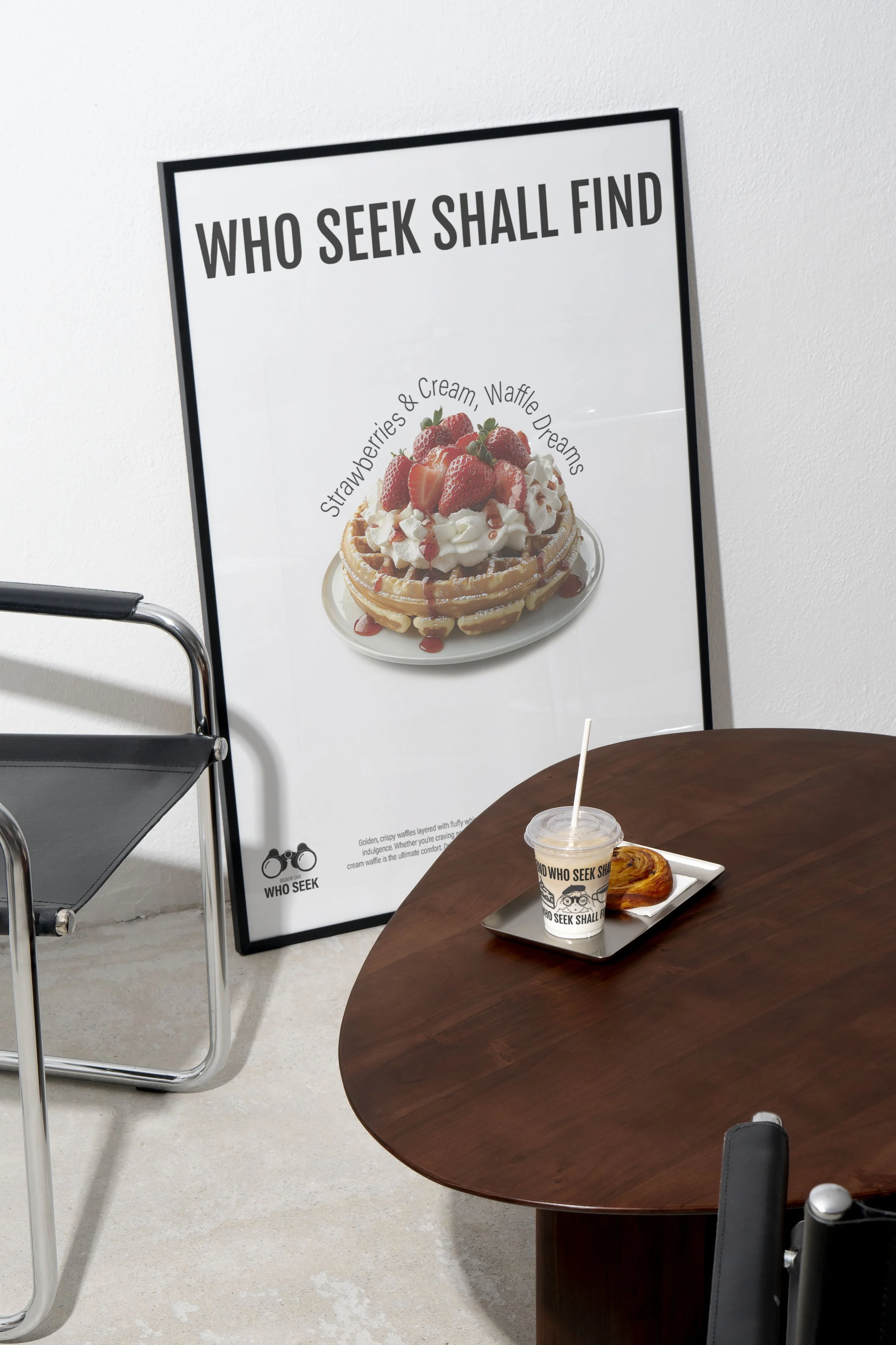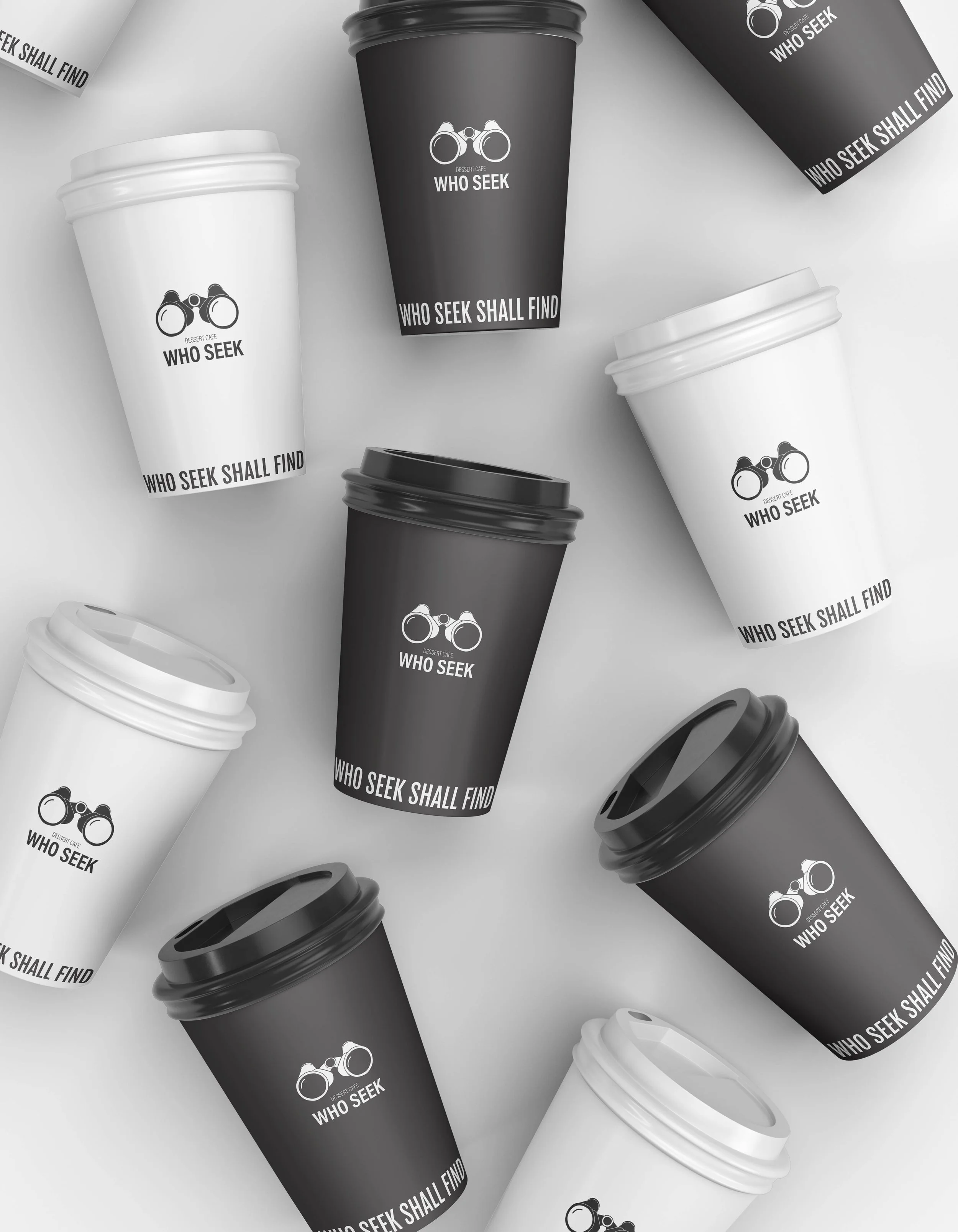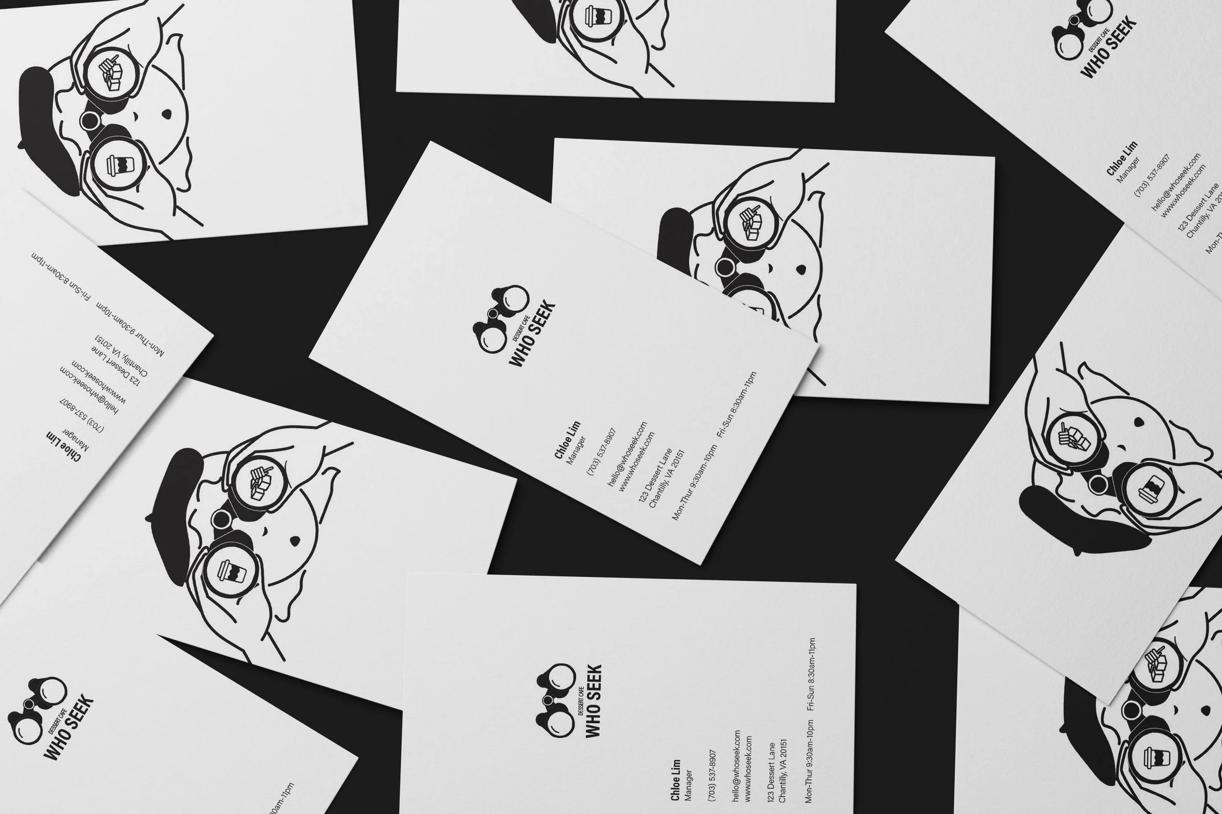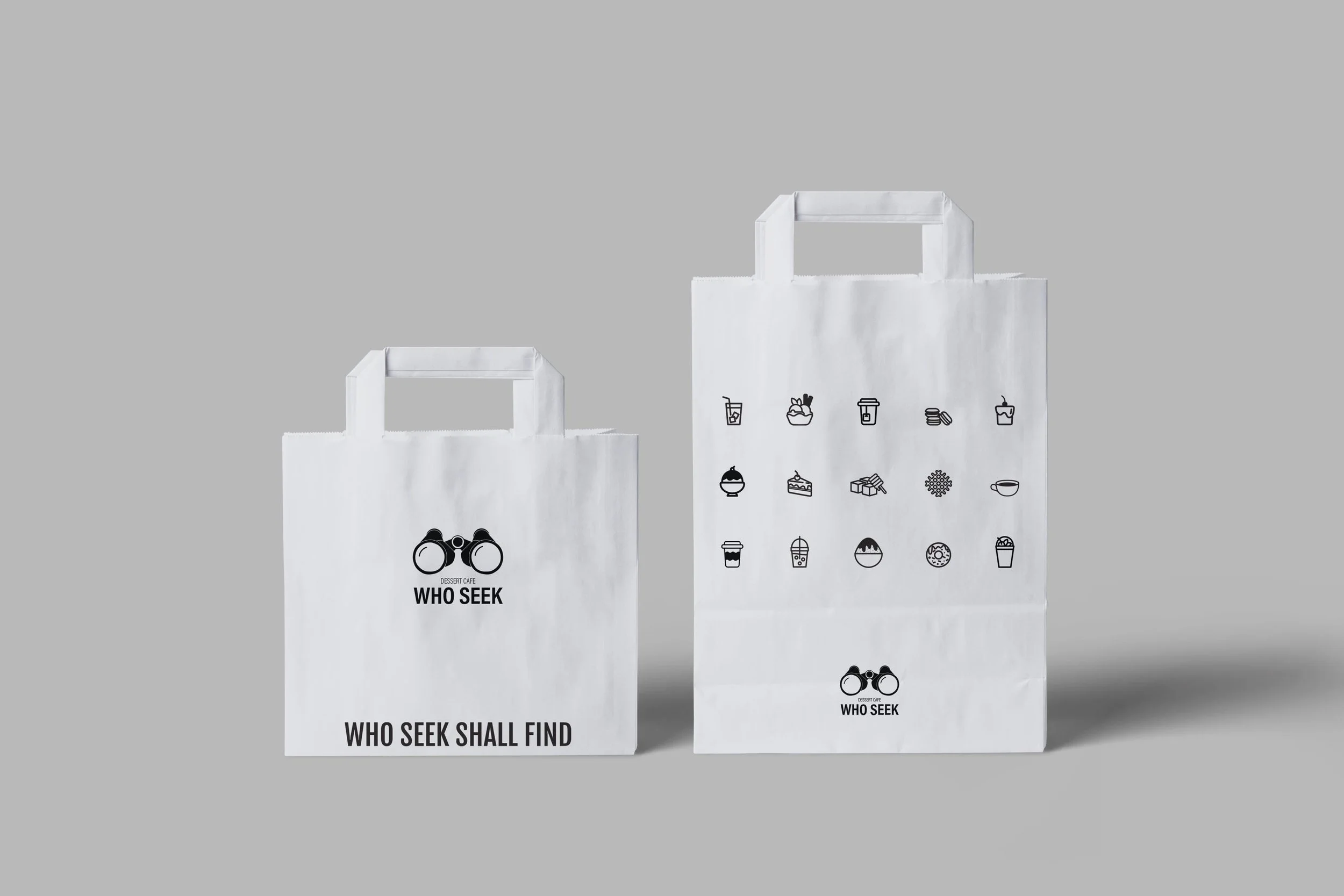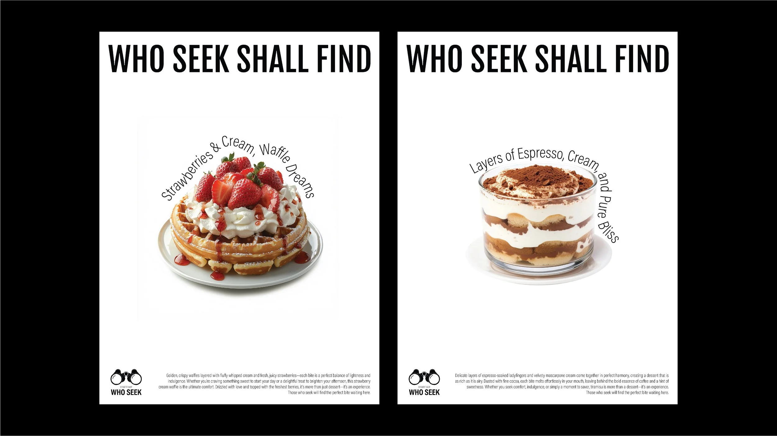 The key visual concept was centered around the idea of seeking, which ties directly into the café’s name. To visually communicate this, the final logo design featured binoculars, symbolizing the act of searching for something sweet. Binoculars also represent exploration and the joy of discovering new flavors, which perfectly aligns with the café’s concept of indulging in new, exciting dessert experiences.